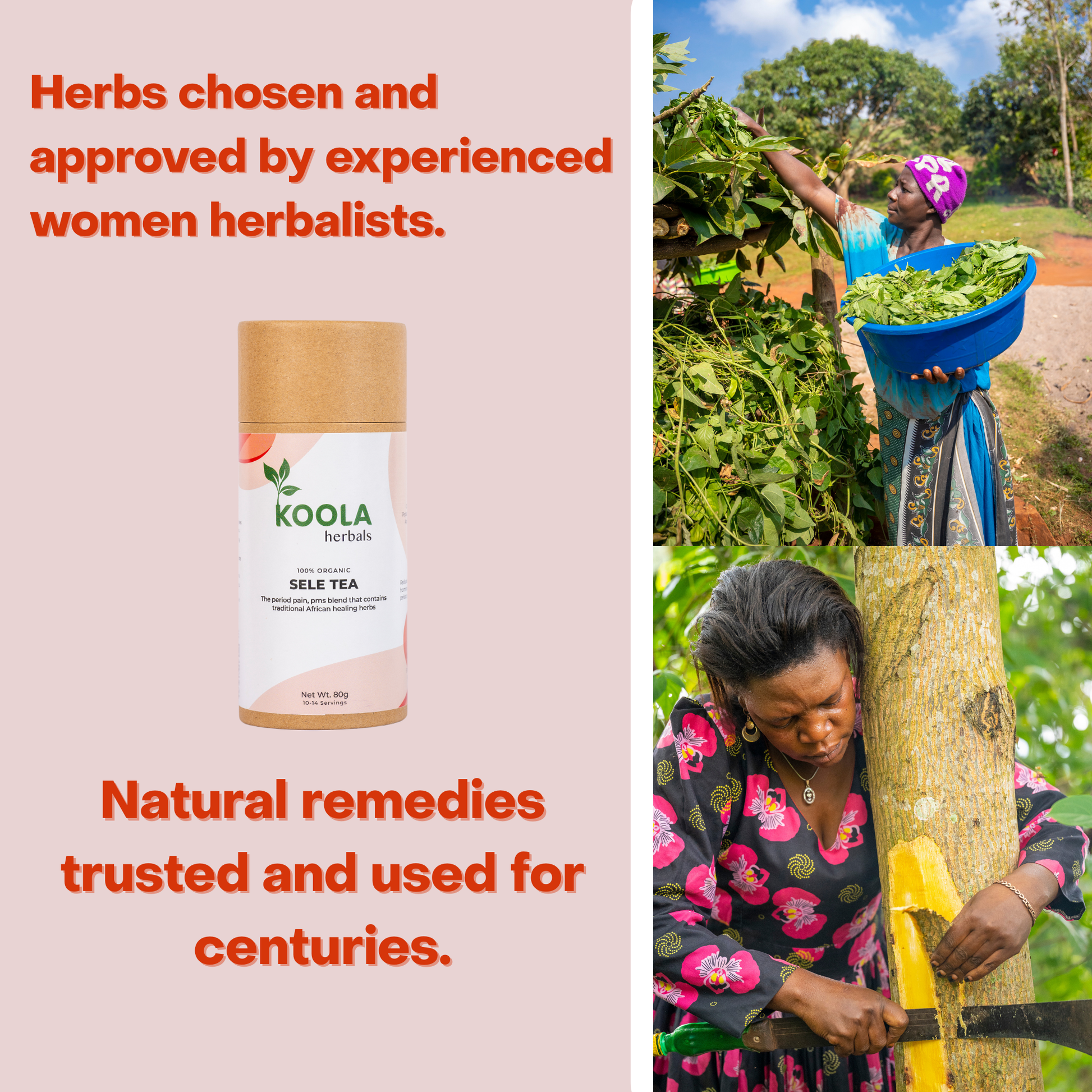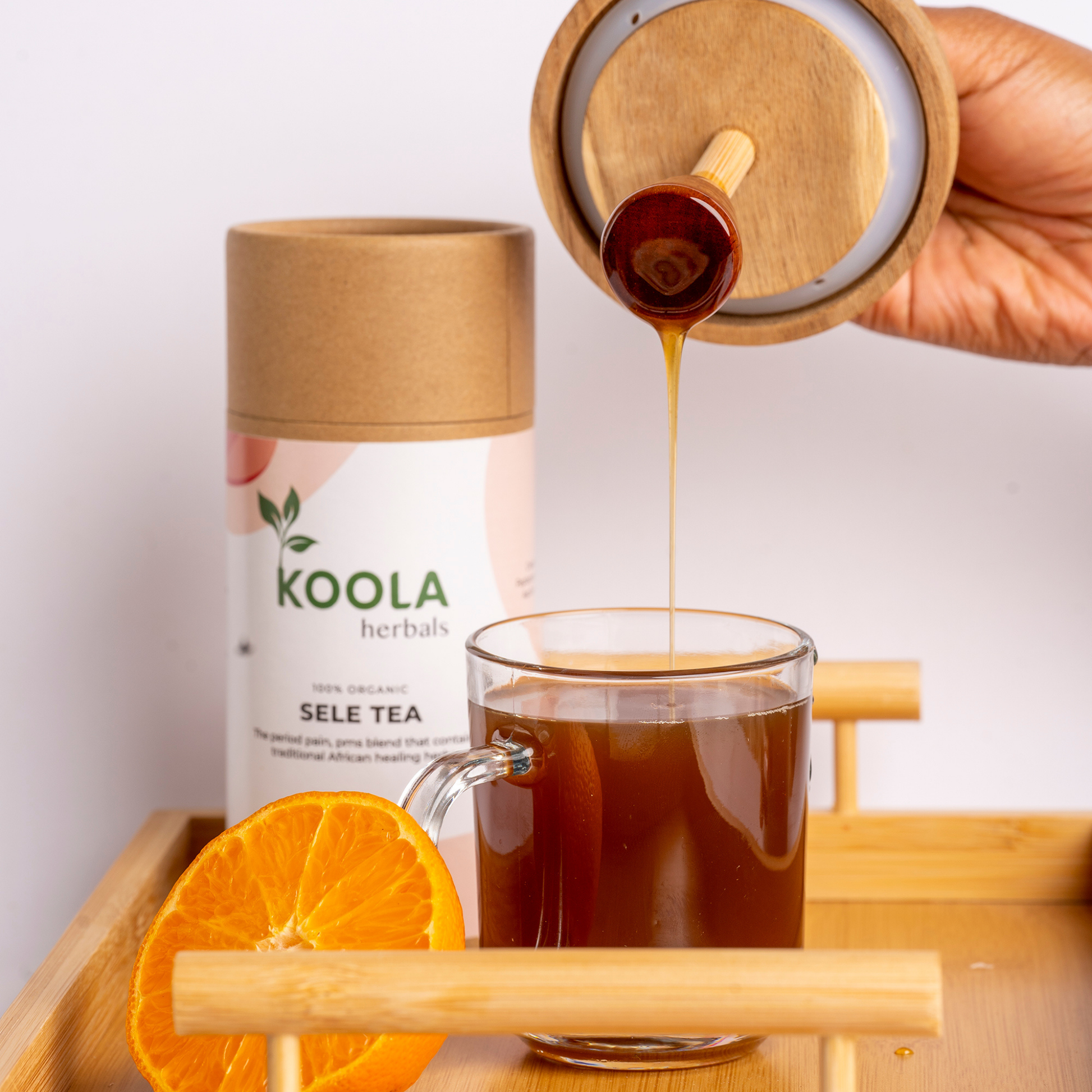 Sele Tea uses Guava leaves, African Tree Basil, and Black Jack to reduce water buildup, calm the stomach, and soothe tightness, bringing relief during pre-period and first period days.